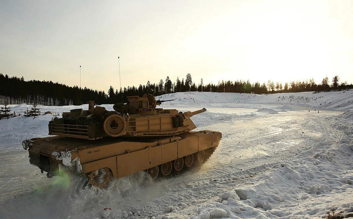 美海军陆战队M1A1坦克雪地机动。