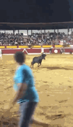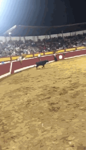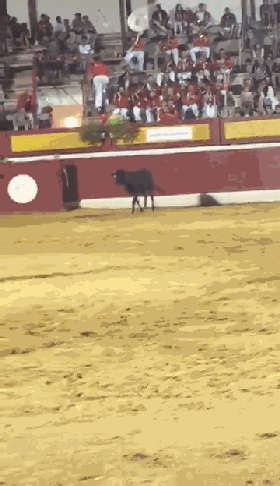 随后牛在场边徘徊,试图寻找跳上围墙的方法,然后再次回到场地中央。(图片来源:推特)