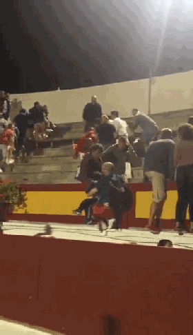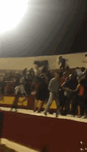 惊险画面!法国斗牛窜上看台横冲直撞 多人受伤