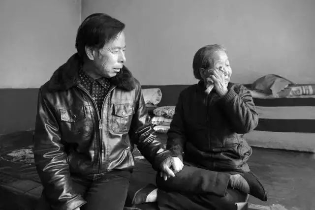 图为1998年冬季,张双兵探望山西“慰安妇”老人李秀梅。