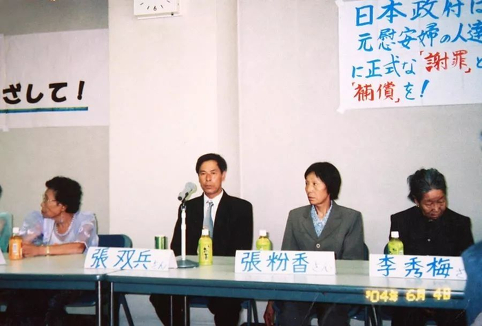 2004年6月,张双兵带领中国“慰安妇”老人在日本国会举行索赔会议。