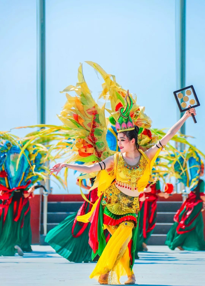 ▲“国际军事比赛-2018”海上登陆赛现场,舞蹈《盛世开元飞天舞》