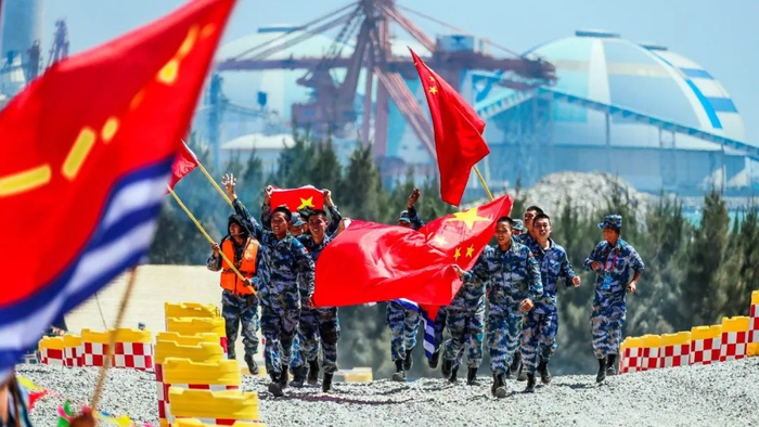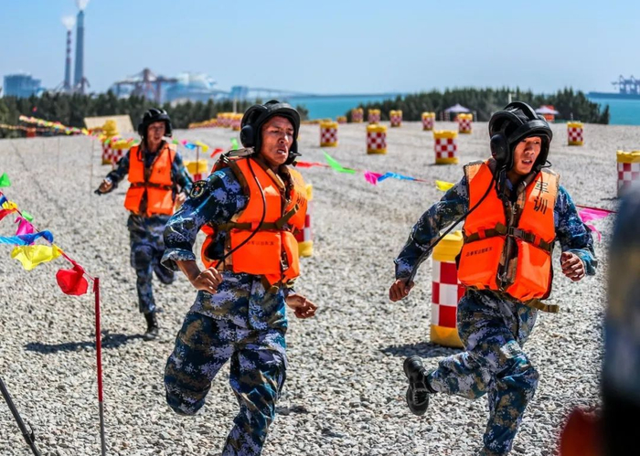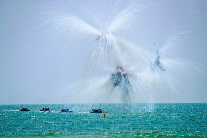 ▲“国际军事比赛-2018”海上登陆赛现场,中国参赛队凯旋