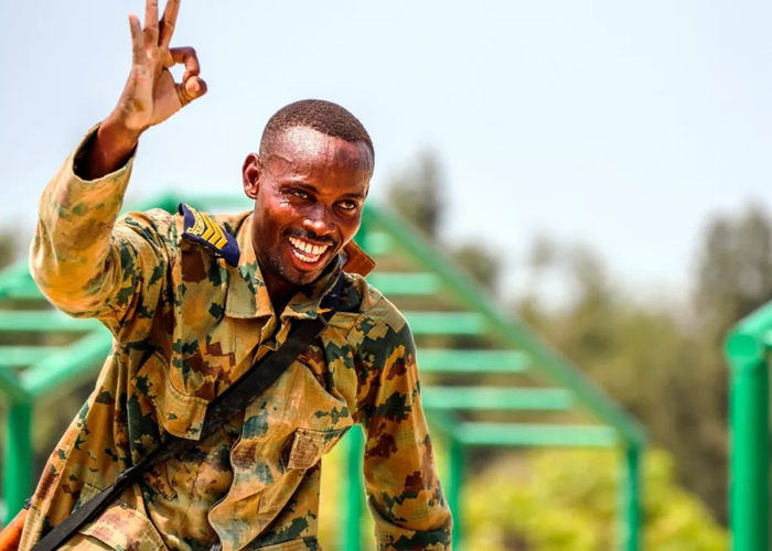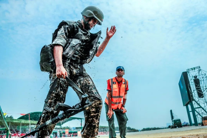 ▲“国际军事比赛-2018”海上登陆赛现场,苏丹参赛队员向观众打招呼。