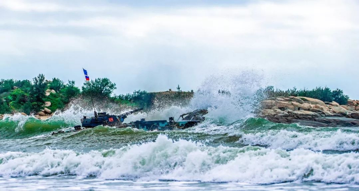 ▲“国际军事比赛-2018”海上登陆赛现场,认真操作