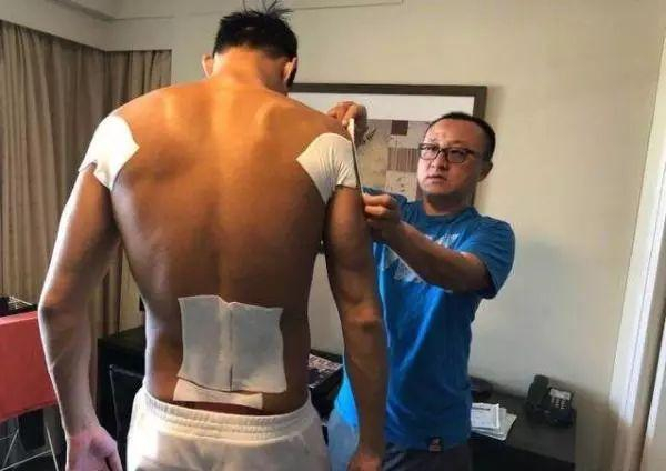 孙杨在澳洲集训时展示满是膏药的后背。 @舒中胜 图