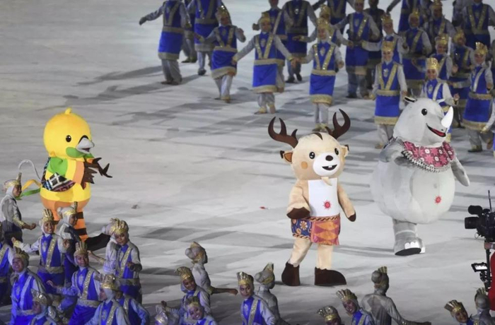这是本届亚运会吉祥物入场。新华社记者潘昱龙摄