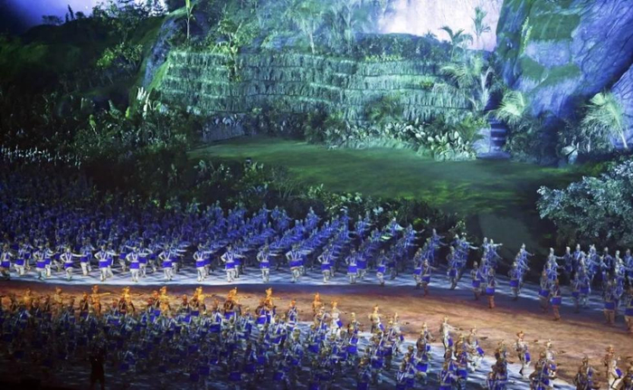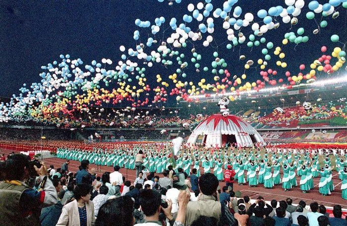 1990年9月22日,第十一届亚运会在北京开幕。图为开幕式现场。新华社发