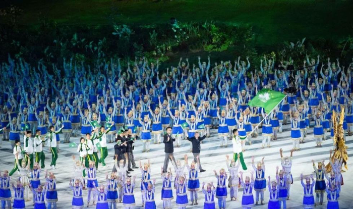 8月18日,中国澳门代表团在开幕式上入场。新华社记者张金加摄