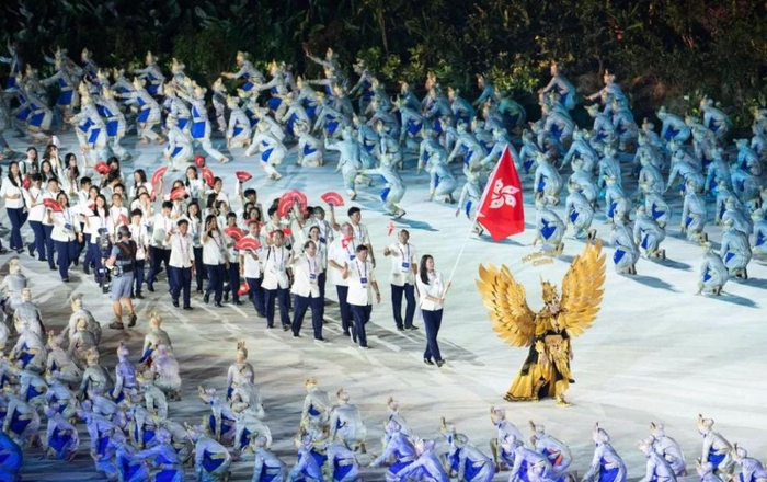 8月18日,中国香港代表团在开幕式上入场。新华社记者张金加摄