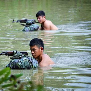 越军特工部队武装泅渡训练。