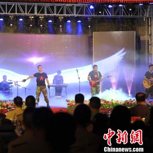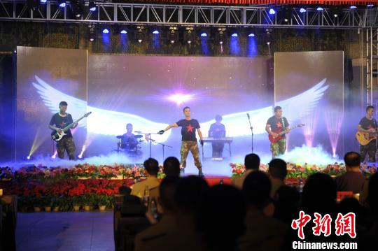 火箭军某部“追梦乐队”为官兵演出,现场氛围热烈,俨然是一台小型的演唱会。 范文佳 摄