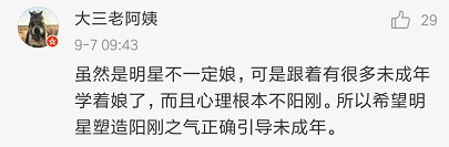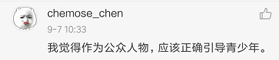 还有网友认为,“明星”等公众人物,有责任严于律己,自觉接受大众监督,正确引导青少年。