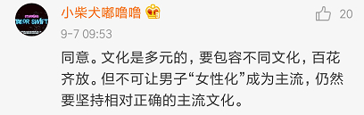 文章发表后,大多数网友持赞同意见,认为存在即是合理,但要在包容文化多元性的同时,避免让男子“女性化”成为主流,他们认为要正确引导社会主流文化走向,因为这会关系到民族国运。