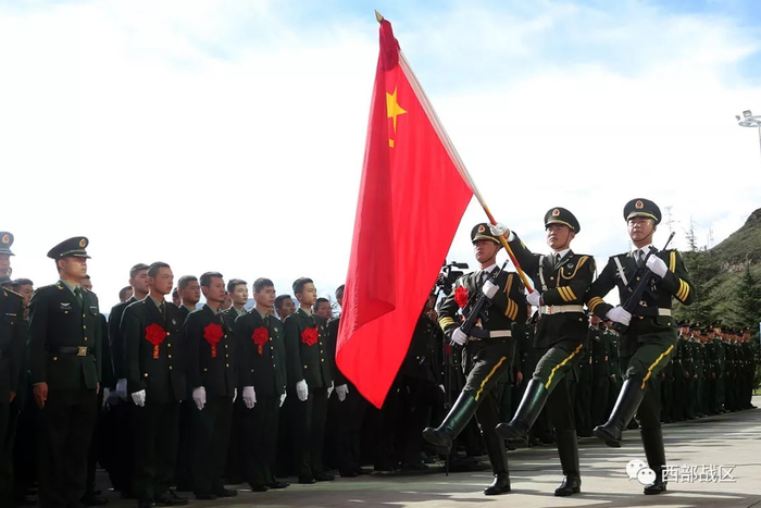 9月11日,西藏军区某旅组织向军旗告别仪式,全体确定退役战士傲然挺立,挥泪告别鲜红军旗,在嘹亮的军歌声中结束火热的军旅生活。
