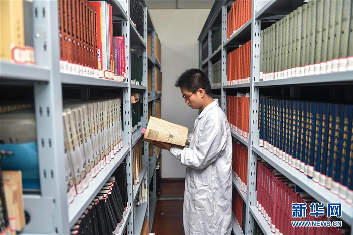 伪满皇宫博物院研究人员赵士见在资料库查阅研究相关史料(9月14日摄)。新华社记者许畅 摄