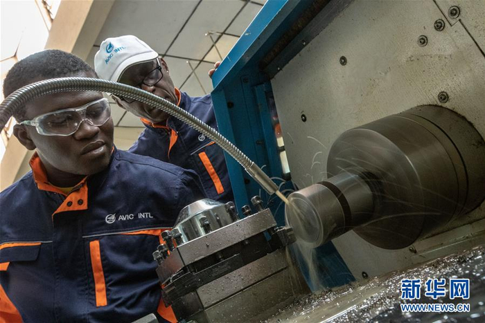近年来,为了帮助非洲国家培养职业技术人才,助力非洲工业化进程,中航国际分别与肯尼亚、乌干达、赞比亚、加纳、加蓬等国教育部合作开展职业教育项目。中航国际不仅为对方提供教学设备,还从中国选派老师来到非洲,手把手将职业技能和经验传授给当地青年。这是8月17日在肯尼亚内罗毕拍摄的一名学生维护机床。新华社记者张宇摄