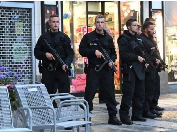 资料图:德国慕尼黑,警察在枪击事件发生地附近区域警戒。