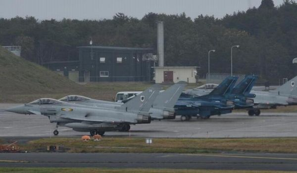 资料图片:英军“台风”战机与日本空自F-2战机联演。(图片来源于网络)
