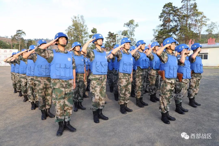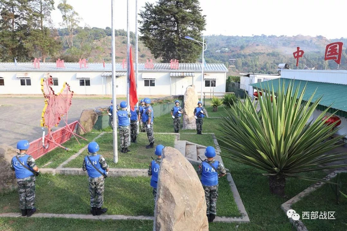 当地时间10月1日上午6时30分,我国第22批赴刚果(金)维和工兵分队在南基武省布卡武市中国半岛营区举行了隆重的升国旗仪式,迎接国庆节的到来,全体官兵在国旗前庄严宣誓,坚决做到牢记嘱托,不辱使命,圆满顺利完成好维和任务,努力做维护世界和平的坚定力量。(李志强)