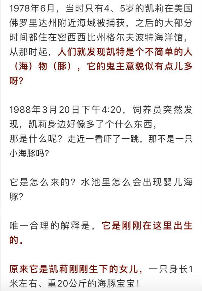 故事的主角是一只名叫凯莉的海豚,它今年已经44岁了。