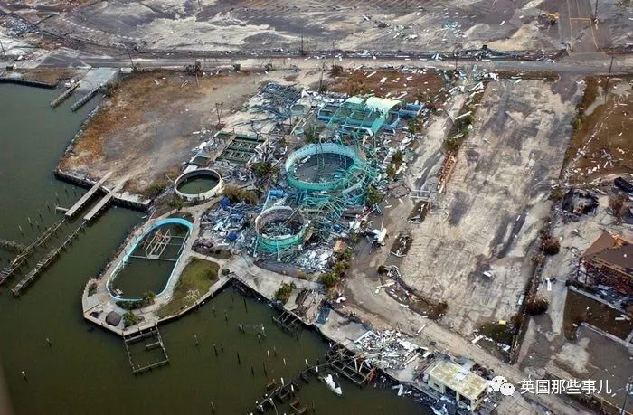 可惜天不遂人愿,就和海湾的大部分东西一样,海洋馆毁于一旦,屋顶被掀起,金属房梁、座位都被吹得四处散落,海洋馆全毁了!