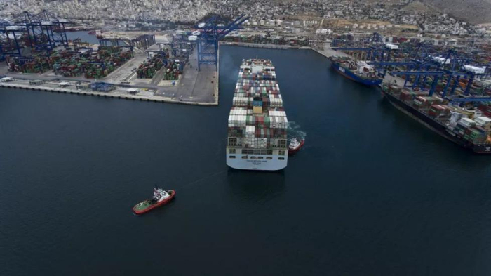 这是2017年5月7日,“中远荷兰”号在希腊比雷埃夫斯港。新华社发(帕诺斯⋅托马达基斯摄)
