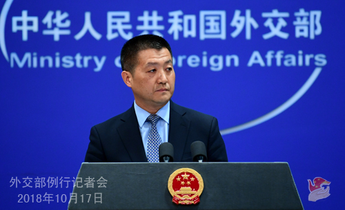 [环球网综合报道]2018年10月17日外交部发言人陆慷主持例行记者会。有记者问到,10月17日,日本首相安倍晋三向靖国神社供奉了名为“真榊”的祭品。中方对此有何评论?