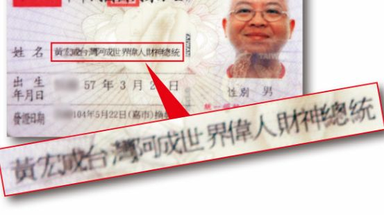 黄宏成的名字已扩展到15个字(图片来源:台媒)