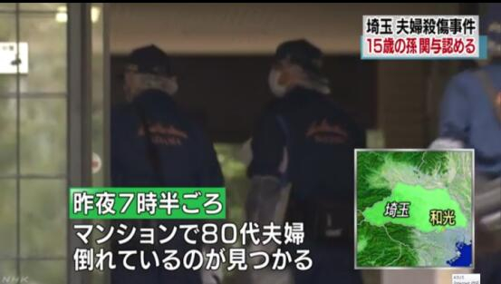 【环球网报道 实习记者 杨璐】日本NHK电视台19日报道称,埼玉县警方于18日晚间接到报案称“一对夫妇倒在了血泊中”。警方随即赶到,经确认丈夫当场死亡,妻子受到重伤被随即送往医院。19日,警方将该夫妇的15岁孙子逮捕归案。