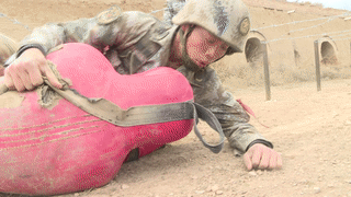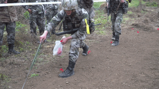 都说一个合格的指挥员必定是一个优秀的战斗员,只见某旅营长拎着两个弹药箱来回跑动,完成规定动作。净重一百多斤的弹药箱在他手中就犹如揣了两枚手榴弹,丝毫不受弹药箱带来的影响,呼哧呼哧的跑下来,裁判宣布用时22秒,惊艳全场!