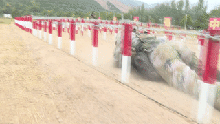 呼啸着的猛士车随着发令声响迅速向终点驶去,定位停车、通过圆形错位障碍,赛场上上演军绿色的速度与激情。