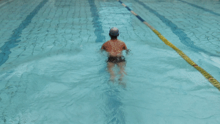 冰凉的水池内,选手们采取蛙泳的方式,完成400米对决。