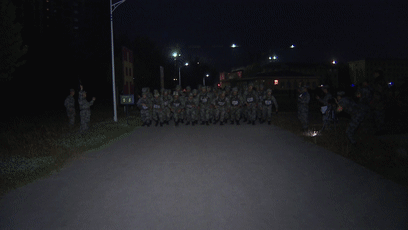 凌晨五点,黑色的夜幕还没有彻底拉开,参加武装五公里武装越野比赛的指挥军官早已检录完毕,在裁判组组织热身以后比赛正式打响。参赛队员精神振奋,斗志昂扬,发令枪声响起,他们向终点发起挑战。