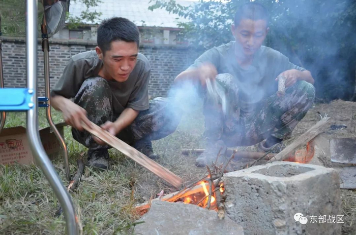 ▲司务长正在想方设法讲木炭点燃
