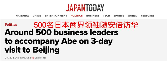 对于安倍此次率领的访华团的庞大阵容,今日日本网进行了详细介绍,报道称,约有500名日本商界领袖随行,重视程度可见一斑。