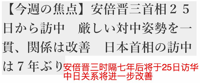不难看出,安倍此次出访备受日本国内舆论关注。日本《每日新闻》甚至这样描述称,安倍首相为10月访华已做好“万全准备”。