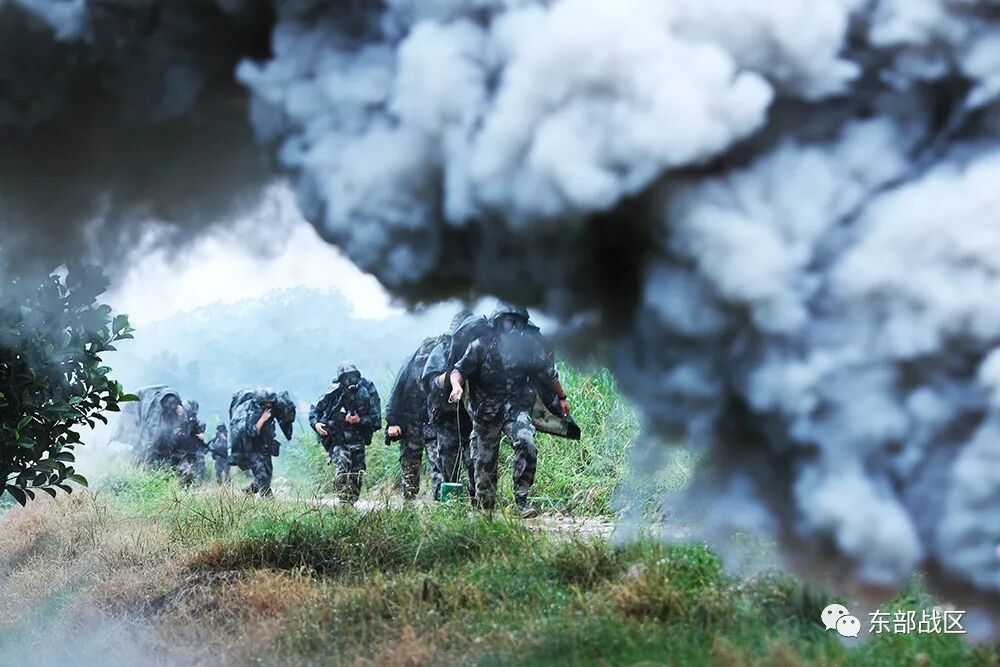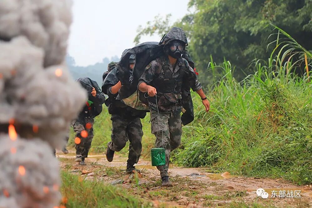 “前方100米处,发现大量烟雾,植被伴有油状液滴。”对讲机中传来侦察员的情况报告,指挥员立即命令后续部队做出相应处理措施,火力组掩护侦察组进行毒剂鉴定,标定染毒区域后,全体人员穿戴防毒面具保护上呼吸道、雨衣防止毒气残留,随后快速通过染毒地带。