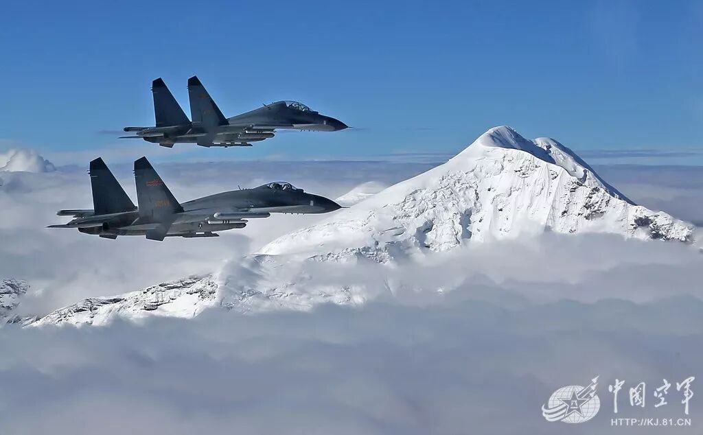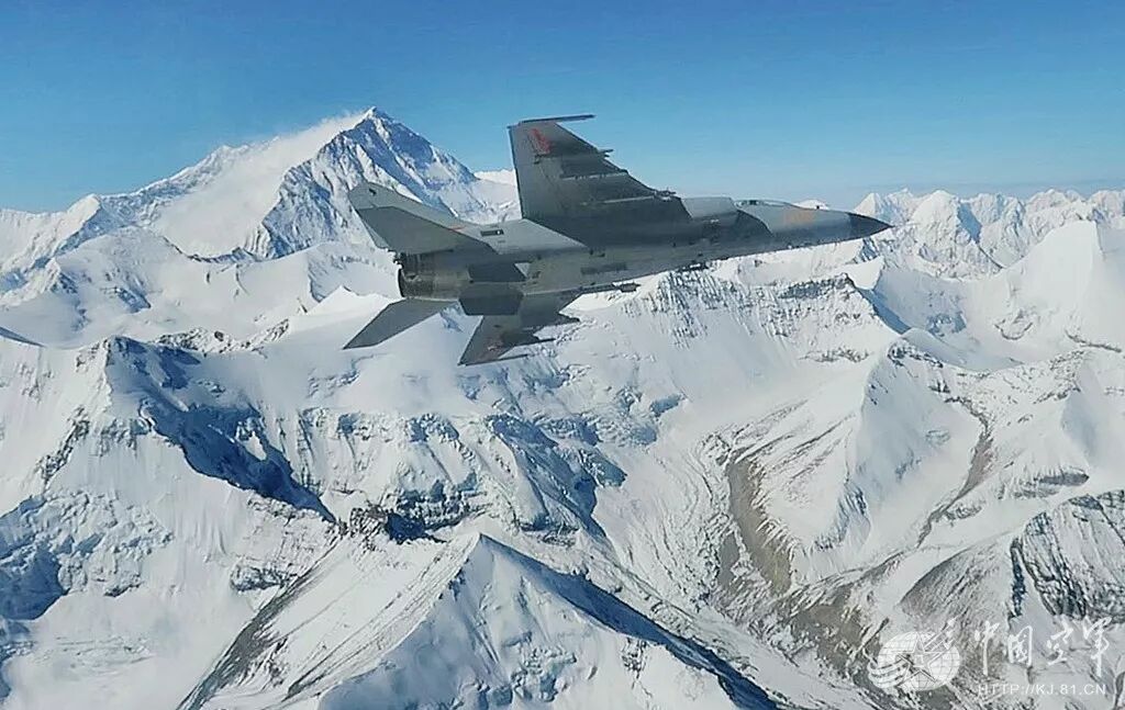飞豹战机在珠穆朗玛峰北侧实施巡航。