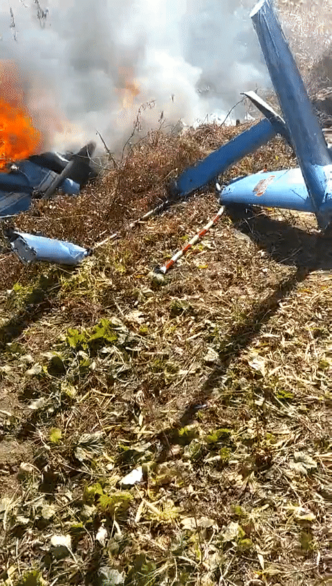 附近村民介绍,当时这架小型直升机在飞行时失控,随后坠落起火。