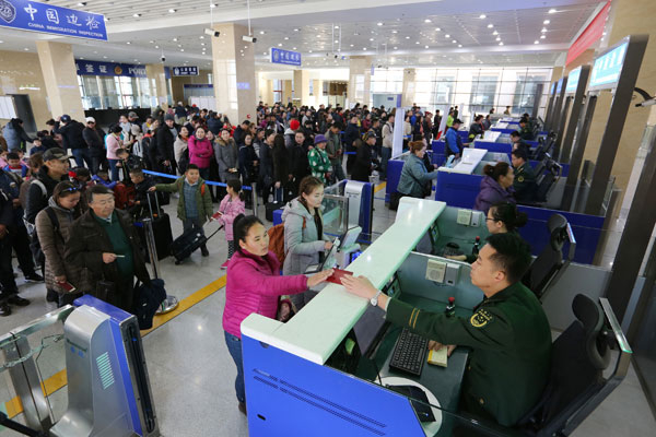 图为二连边防检查站开通全部查验通道,快速验放通关旅客
