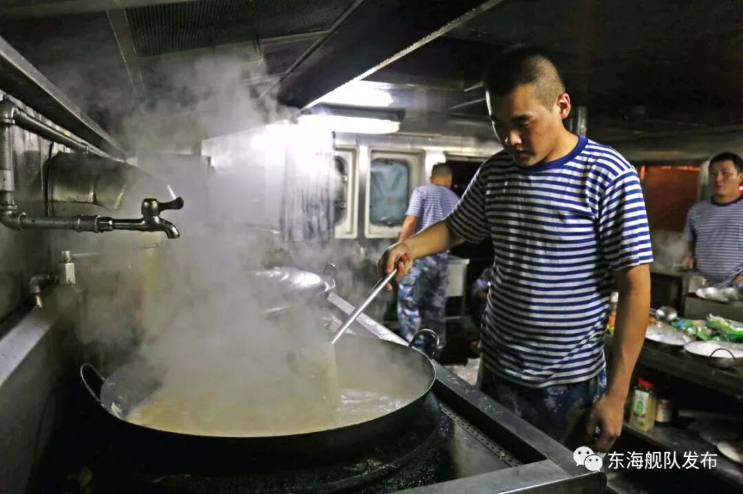 ▲ 天台山舰炊事兵唐成正在给演出人员准备夜宵