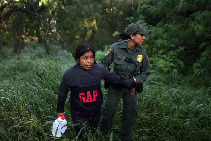 美国米申,一名美国边境巡逻队员逮捕了一名来自危地马拉的非法入境女子。