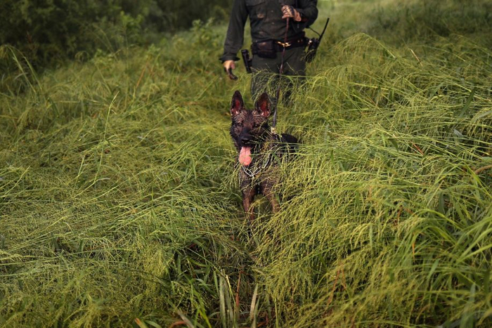 美国米申,美国边境巡逻犬正在执行任务,它会对那些非法入境的人进行攻击。