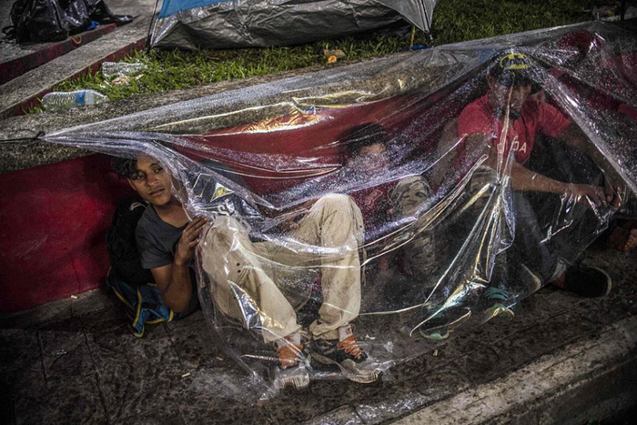 10月23日,在墨西哥维斯特拉,来自洪都拉斯并准备前往美国的移民在临时营地休息。近日,数千名洪都拉斯、危地马拉和萨尔瓦多等中美洲国家民众穿越边界进入墨西哥南部,并计划继续向北前往美国。此次中美洲国家部分民众的“北上”,引发相关国家忧虑,或影响美国与墨西哥及相关中美洲国家之间的关系。新华社/法新