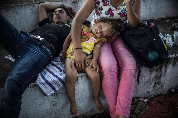 10月23日,在墨西哥维斯特拉,一名来自洪都拉斯并准备前往美国的移民抱着女儿休息。近日,数千名洪都拉斯、危地马拉和萨尔瓦多等中美洲国家民众穿越边界进入墨西哥南部,并计划继续向北前往美国。此次中美洲国家部分民众的“北上”,引发相关国家忧虑,或影响美国与墨西哥及相关中美洲国家之间的关系。新华社/路透