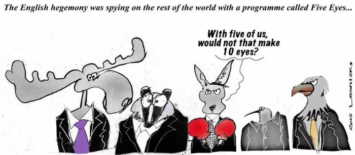 如今,各国都有专门与“五眼”对接的情报机构:美国国家安全局、英国政府通信总部、澳大利亚信息理事会、加拿大通信安全局和新西兰政府通信安全局。