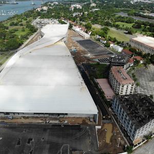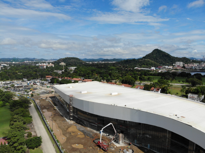 走访巴拿马国家会展中心当天艳阳高照。一行人进入轰鸣的建设场地,除了800多名不同肤色的工人集体劳作的场面,很难感受到全貌。但已经有记者迫不及待地拿出无人机,并拍下了整个工程的全貌。巴拿马会展中心位于运河区,毗邻大海。在无人机的镜头下,洁白的建筑和流畅的线条,配上碧蓝的汪洋和翠绿的树木,显得恢弘大气,仿佛一艘即将扬帆的巨船。据了解,巴拿马国家会展中心预计明年年初完工,目前已经建成80%。