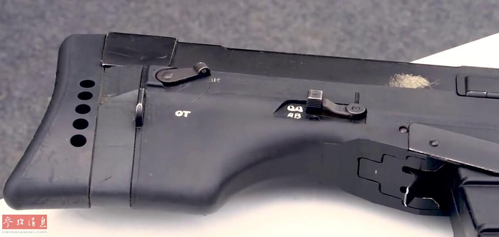 Ash-12枪身后部及枪托特写。