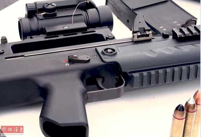 ASh-12步枪的供弹系统及20发弹匣特写。